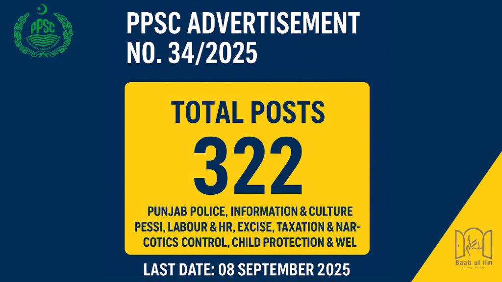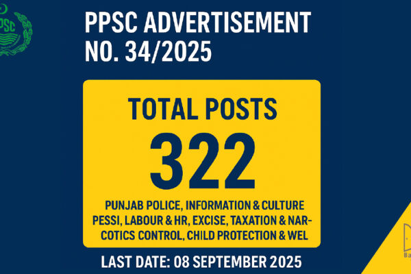 This article provides a detailed breakdown of PPSC Advertisement No. 34/2025, including vacancies, eligibility criteria, syllabus, and application procedure. The Punjab Public Service Commission (PPSC) has announced Advertisement No. 34/2025, published on 24 August 2025, offering multiple job opportunities in different government departments across Punjab. Candidates with relevant qualifications and experience are encouraged to apply…